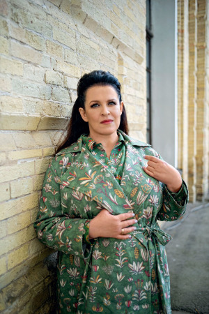 Над фотосесією, яка відбулась на території Мистецького Арсеналу, працював відомий фотограф Сергій Мельниченко. На світлинах схудла Писанка позує у стильному пальті зеленого кольору у квітковий принт. Романтичності образу додав вечірній макіяж.
