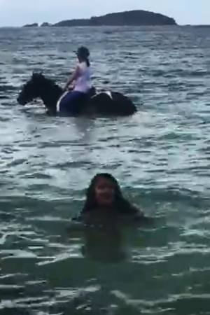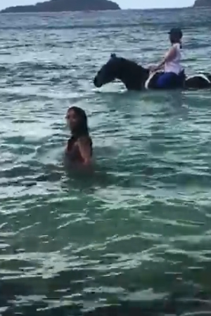 Голлівудська актриса Сальма Хаєк розмістила в Instagram ролик, для якого позувала в океані, плаваючи серед коней.