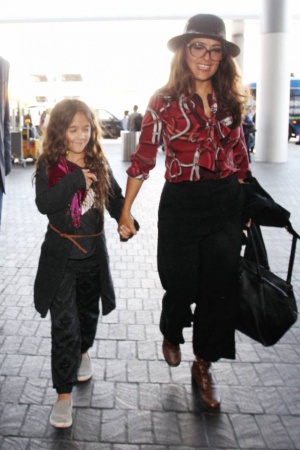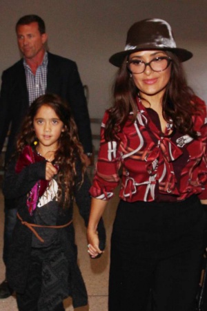 Так, днями в аеропорту Лос-Анджелеса Хайєк з'явилася на публіці, тримаючи за руку свою семирічну доньку Палому Піно. До речі, дівчинка помітно підросла і, незважаючи на низьку якість фотографій, чітко видно, що вона досить схожа на свою зіркову матусю.