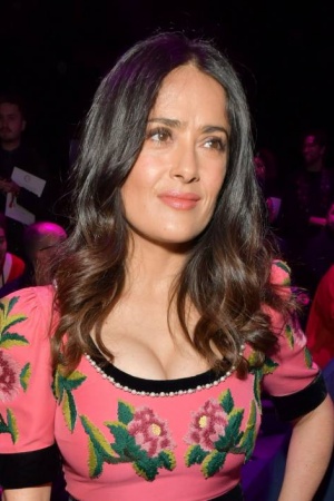 Днями, Сальма була помічена на шоу Gucci, яке відбулося в рамках Тижня моди в Мілані. Для виходу в світ актриса вибрала яскраве рожеве плаття з вишивкою і виразним декольте. До речі, на показі Хайєк супроводжував її чоловік - Франсуа Піно.