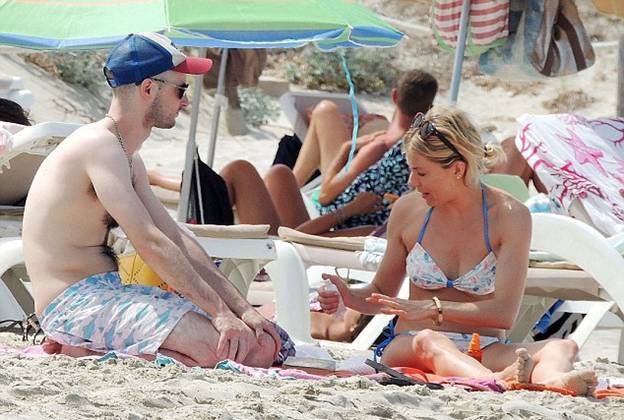 Однак пара все ж знайшла час і влаштувала собі канікули на узбережжі Іспанії. Їх помітили на міському пляжі Аліканте, де вони насолоджувалися яскравим сонечком і теплою водою Середземного моря.