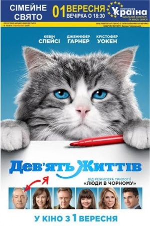 1 вересня, у четвер, кінотеатр "Україна" запрошує Вас на Сімейне свято і перегляд комедійного фільму "Дев'ять життів"!