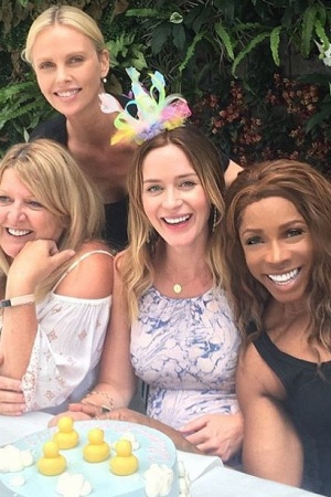 Актриса Емілі Блант влаштувала вечірку на честь майбутньої дитини. Блант запросила на "Baby shower" свою колегу Шарліз Терон, з якою подружилася під час роботи над фільмом "Мисливець і Снігова Королева". На свято Терон завітала без яскравого макіяжу, продемонструвавши природну красу.