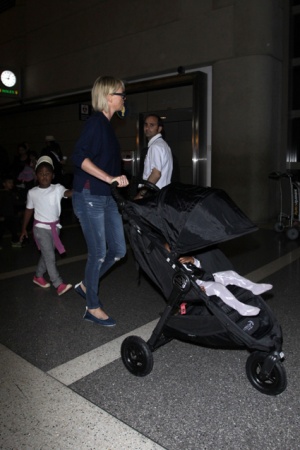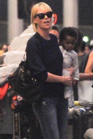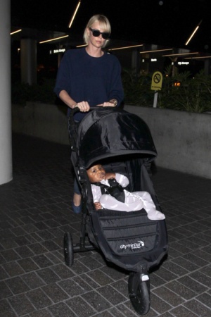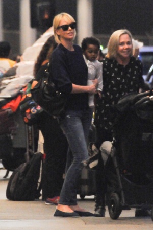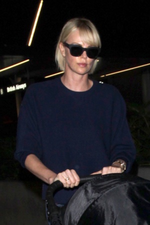 Днями так і сталося, і актрису сфотографували, коли вона разом з сином, донькою та помічниками відлітала з Лос-Анджелеса. Маленьку Августу Шарліз тримала на руках, поки 4-річний Джексон терпляче стояв поруч. Коляску Терон теж вирішила везти сама, не довіряючи асистентам — актриса і без нянь відмінно справляється з дітьми.