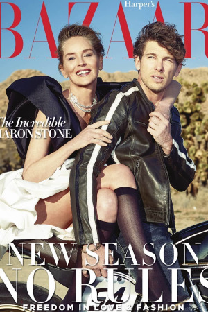 Так, зірка "Основного інстинкту" прикрасила одразу дві обкладинки глянцю. На одній з них Шерон позувала сидячи на байку разом із чоловіком. Перед фотооб’єктивом Стоун позувала в чорно-білій сукні із глибоким декольте та пишними рукавами, коштовному намисті а також у чорних гольфах.