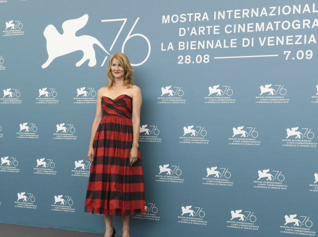 На фотоколі разом зі Скарлетт з'явилася ще одна героїня фільму – 52-річна Лора Дерн. Вона блищала в червоно-чорній сукні з досить відвертою лінією на декольте і з червоною помадою на губах. Образ зірки доповнювали шкіряні туфлі на шпильках від Christian Louboutin з цікавими пряжками у вигляді круглих ґудзиків.