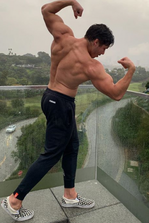 У своєму мікроблозі в соціальній мережі Джозеф виставив напоказ мускулисте тіло. У спортивних штанях і чорно-білих мокасинах син Арні позував на власному балконі на тлі мальовничого пейзажу Лос-Анджелеса.