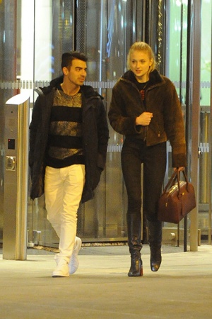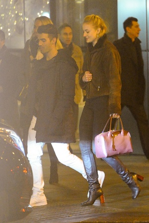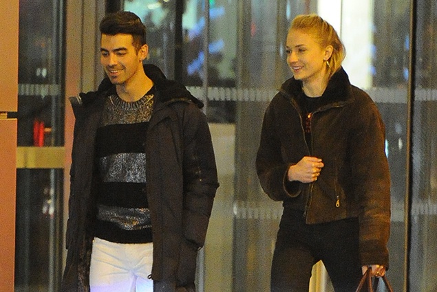 Вчора ж фотографам нарешті вдалося сфотографувати Софі і Джо разом — на прогулянці в Лондоні. Закохані поверталися після романтичної вечері в ресторані Duck and Waffle і виглядали щасливими і розслабленими.