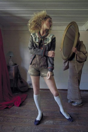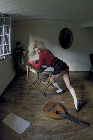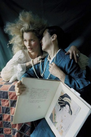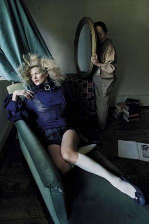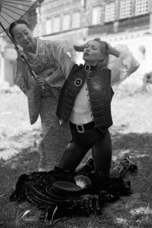 На знімках Кейт позує на природі, то в маленькій кімнатці, споглядаючи на себе в дзеркало, яке тримає літня японка.
