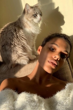 Так, в Інстаграм Кунакі поділилася кадрами з недавньої фотосесії. На одній з фотографій вона позує в теплому білому светрі, який оголяє її плечі, і виразно демонструє животик, що округляється. А ось на другому - з милим котеням.