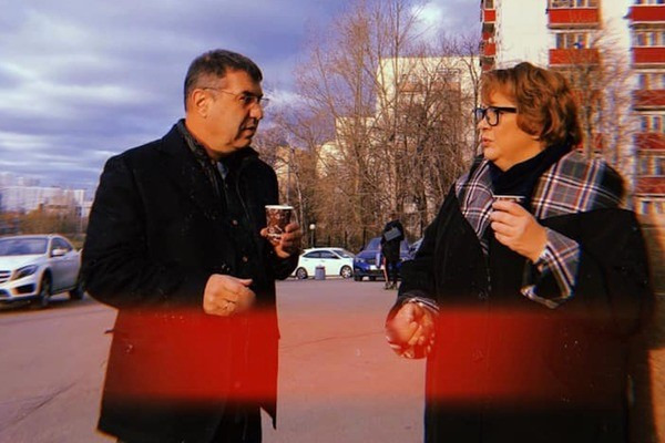 На опублікованому знімку Тетяна зафіксована з режисером Євгенієм Гришковцем, з яким вона спілкується в перерві на зйомках серіалу "Звичайна жінка-2".