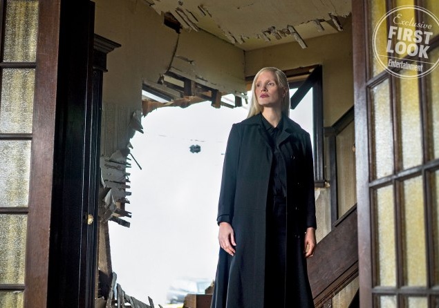 На перших кадрах можна побачити безпосередньо Софі Тернер, промоклий до нитки під дощем; яскраву Дженніфер Лоуренс в образі Містик; а також новачка франшизи Джесіку Честейн в образі головної антагоністкі: тут вона блідолиця блондинка в чорному плащі. На обкладинці журналу красується гола і палаюча Джин Грей.