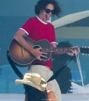 Зірки не соромилися своїх почуттів й не лише разом релаксували у воді, а й пристрасно цілувалися та обіймалися роздягнені під палючим сонцем. Схоже, акторка Ейса Гонсалес надихає Тімоті Шаламе, адже романтик співав для неї під гітару.