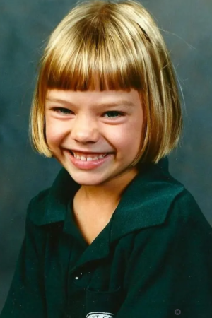 В ранньому, геть дитячому фото Роббі позує зі світлим волоссям, тож схожість є. У неї така ж щира посмішка на всі ідеальні 32.