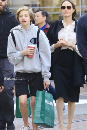 Але цього разу репортери приділили особливу увагу не Джоли, а Шайло. Дівчинка, яка, до речі, вже майже наздогнала маму по зростанню, прийшла у бутик в шортах, продемонструвавши усім свої стрункі і довгі ноги. Прихильники Анджеліни раніше не звертали уваги на те, що у неї формується фігура, як у моделі. Напевно, тому, що Шайло зазвичай ховає тіло в одязі безформного фасону. Дочка Джоли, як відомо, повністю заперечує в собі жіноче начало і планує стати хлопчиком.