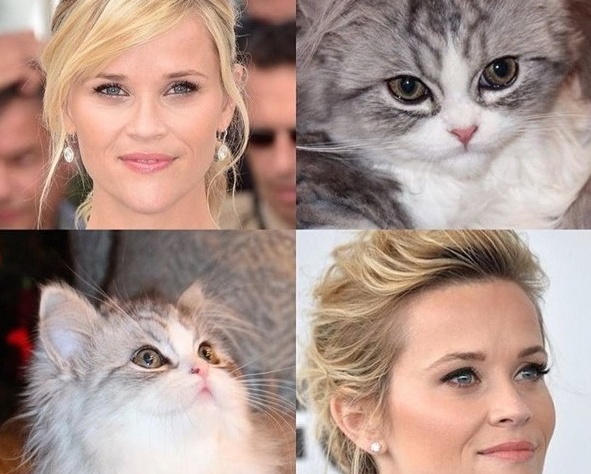 Новий цікавий тренд з'явився серед знаменитих персон. Артисти порівнюють себе з котиками і навіть знаходять своїх двійників серед котячих. Актрисі Різ Візерспун (Reese Witherspoon) пощастило, і вона вже знайшла те, що потрібно.