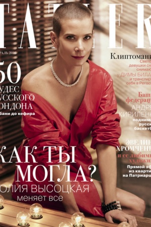 Днями популярна російська телеведуча Юлія Висоцька вразила шанувальників, з'явившись в студії ранкової програми " Ранок з Юлією Висоцької (канал НТВ) в новому образі – ведуча поголила голову налисо. Після кардинальної зміни іміджу Висоцька погодилася на свіжу фотосесію для російського журналу Tatler.