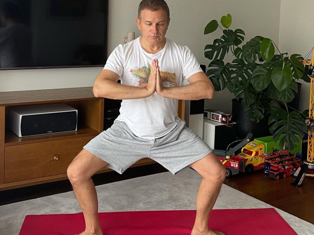 До слова, знаменитість виконував дві нескладні асани. Таким чином він тримає свої м'язи у тонусі. Загалом, ведучий пропрацьовує кожну клітину свого організму.