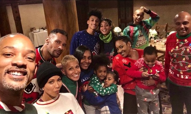 На цей раз на фото Сміт позує не саме, і не з колегами по роботі. Вперше Уїлл зобразив на фото свою сім'ю - дружину Джаду Пінкетт Сміт, а також сина Джей і дочка Віллоу, які помітно підросли. Ймовірно, Різдво поєднало багато зоряних сім'ї, і це щастя - що близькі люди змогли знайти час і провести його разом. Здається, сімейству Сміт було дуже весело!