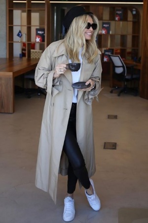 Так где "модный образ", которым она кого-то очаровала?! Сейчас пол страны в плащах и кроссовках ходят.
