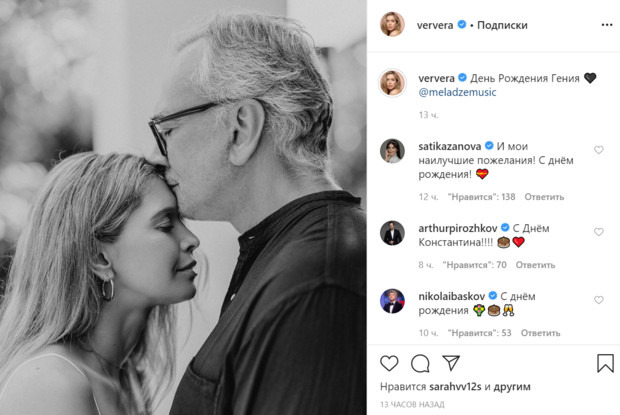 Сам же Костянтин опублікував в Инстаграме відео, в якому Віра заспівала свій хіт "Любов врятує світ". При цьому Меладзе акомпанував їй і із задоволенням підспівувачів.