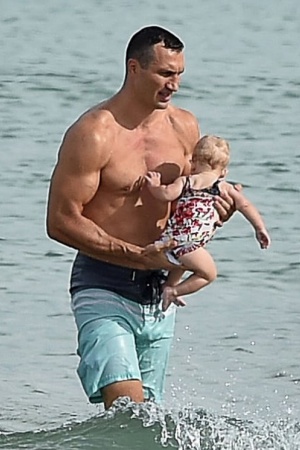 Днями Володимир був помічений зі своєю 9-місячною дочечкою Кайей на одному із пляжів Маямі, де навчав дитину плавати.