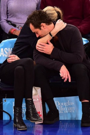 Джуд Лоу і його дівчина Філліпа Соал в п'ятницю вдень показали, що вони щасливі і люблять один одного. Пара, яка разом з весни минулого року, з'явилася разом на баскетбольному матчі в Медісон Сквер Гарден.