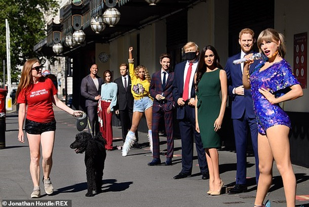 Біля входу Музею мадам Тюссо перехожих вітають воскові фігури всесвітньо відомих персон. Таким чином галерея заявила про своє швидке відкриття після карантину.