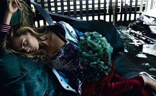 Знявшись в "Загоні самогубців" і "Валер'ян і Місто тисячі планет" Люка Бессона, Кара Делевінь згадала про свою кар'єру моделі — і знялася для обкладинки вересневого номера британського Vogue. Над фотосесією з участю Кари попрацював відомий модний фотограф Маріо Тестіно.