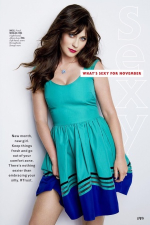 Зої Дешанель, відома по ролі у фільмі "500 днів літа" і серіалом "Новенька", взяла участь у фотосесії для журнла Cosmopolitan за листопад 2016.