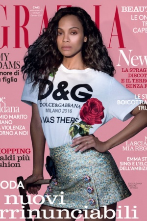 Зої Салдана, яку через кілька місяців можна буде побачити на великому екрані в продовженні "Вартових Галактики" в образі Гаморы, знялася в стильному фотосеті для італійського видання Grazia.