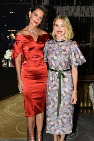 Кеті Холмс вибрала для вечора елегантну шовкову коктейльну сукню від Zac Posen, а Наомі - романтичніший наряд від Erdem, доповнивши його сумочкою Juditch Leiber і туфлями Jimmy Choo. Зрозуміло, усі зірки з поваги до організатора вечора наділи прикраси Harry Winston.