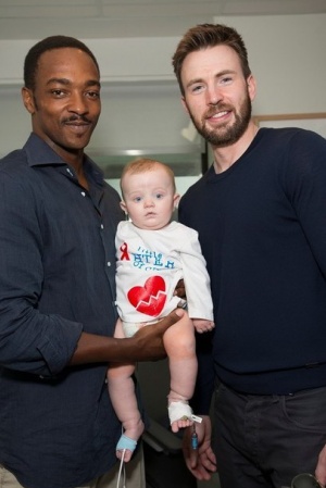 У перервах між зйомками нових фільмів колеги по франшизі "Перший Месник" Кріс Еванс і Ентоні Макі займаються благодійністю — днями актори разом відвідали дитячу лікарню в Бостоні. Зірки "Першого Месника" позували для фото з одним із самих маленьких пацієнтів дитячої лікарні —9-місячним Карсоном Стенсоном.
