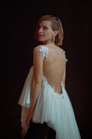 Емма постала з розпущеним волоссям і легким макіяжем і доповнила свій образ лаконічними золотистими прикрасами - сережками й браслетом.