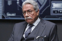З 2003 року Олмос виконує роль Вільяма Адама у фантастичному міні-серіалі, а потім телесеріалі "Зоряний крейсер "Галактика", рімейку версії 1987 року, і телефільмів за мотивами телесеріалу. Також він оголошений режисером телефільму "Зоряний крейсер "Галактика": План".