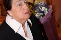 Урна з прахом похована на Ваганьковському кладовищі поряд з чоловіком.